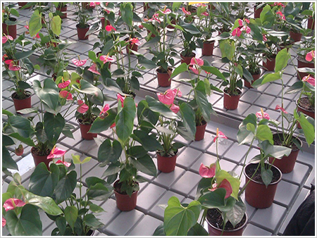1 荷蘭設(shè)施農(nóng)業(yè)水平居于歐洲前列,注重高新技術(shù)成果的推廣和使用,大部分生產(chǎn)企業(yè)都普遍使用了無土栽培技術(shù)、潮汐式灌溉技術(shù)。荷蘭的潮汐灌溉技術(shù)比較發(fā)達(dá),潮汐灌溉系統(tǒng)營養(yǎng)液配比由計算機(jī)完成,當(dāng)計算機(jī)下達(dá)指令后,肥料自動配比機(jī)從雨水池抽進(jìn)雨水,并嚴(yán)格按指標(biāo)和肥料混合,混合成的液體在同一時間象海水漲潮一樣涌出栽培床上,形成 30mm 高的肥水槽,使放在上面栽培容器里的基質(zhì)在同一時間,通過網(wǎng)狀的容器底部吸入肥料。10000㎡的溫室,栽培20 萬株盆花,一個人操作,全過程只用 3 個小時,并且施肥精確。在我國相應(yīng)面積需要 10 個人,6-10 天才能完成。