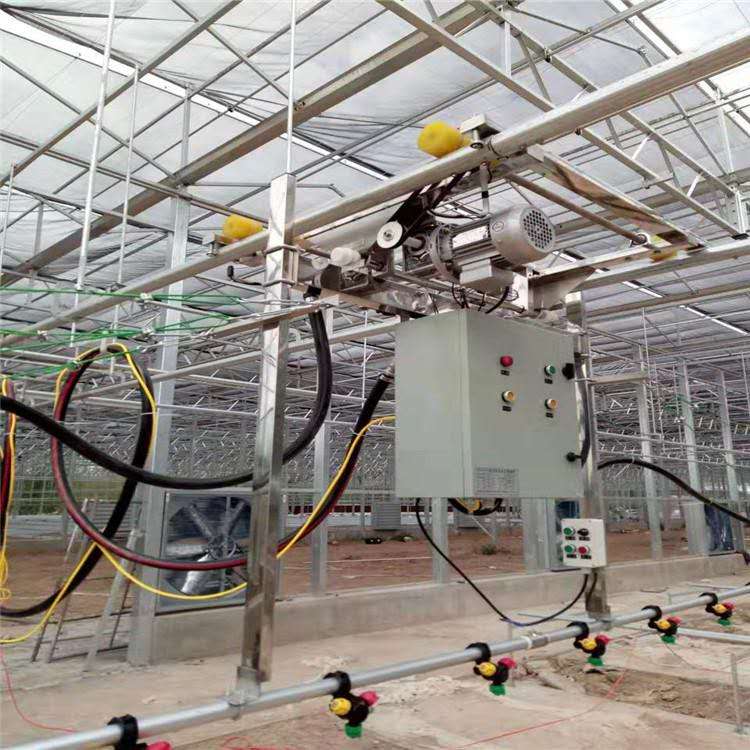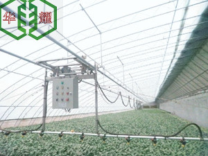 溫室大棚育苗噴灌設(shè)備,又稱為溫室自動(dòng)變軌噴灌機(jī),自走噴灌機(jī),雙臂噴灌機(jī), 它廣泛應(yīng)用于溫室、平整陸地及苗圃噴灌施肥操作,為現(xiàn)代農(nóng)業(yè)農(nóng)業(yè)灌溉新寵。可澆灌,可施肥,可施藥。其突出特點(diǎn)為:節(jié)省人力,節(jié)省水肥、噴灌均勻,避免藥劑對(duì)人體產(chǎn)生危害。按照功能及用途分為多種。A、懸掛軌道式噴灌機(jī):軌道吊掛于溫室的桁架上,可以節(jié)省種植面積,兼做運(yùn)輸軌道車;B、地走式噴灌機(jī):噴灌機(jī)行走于地面上,適合室外露天及室內(nèi)頂部無法吊掛的場(chǎng)合應(yīng)用;亦可以兼做運(yùn)輸車使用。
