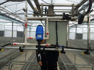 在每一棟溫室的端部預(yù)留出水源和電源接口。水源接口尺寸為DN20外徑的UPVC管,要求水壓力不小于3 Kgf/cm2。電源為~220V/50Hz。