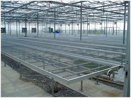 2、苗床邊框為鋁合金,支架部分的鋼管和苗床網(wǎng)都采用熱鍍鋅工藝,能在潮濕環(huán)境下長期使用。