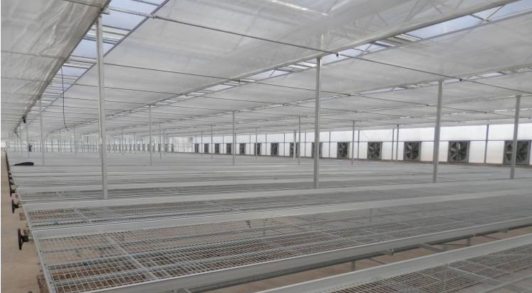 物流苗床,由單體苗床、苗床導(dǎo)軌、苗床縱向轉(zhuǎn)移滑道組成。苗床單體尺寸1.8m*5.75m可以在苗床導(dǎo)軌上做橫向移動,溫室兩端留出專門的通道,配置苗床縱向轉(zhuǎn)移裝置,通過氣動裝置負(fù)責(zé)苗床的縱向轉(zhuǎn)移,形成了完整的苗床輸送系統(tǒng)。無論是剛剛完成的種苗移栽,還是盆花的成品上市,均可以通過這套系統(tǒng)高效完成。