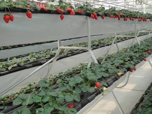 草莓是對土壤病菌非常敏感的作物之一,一旦在同一塊土地上連續(xù)栽種,土壤病菌就會嚴重威脅到草莓。對很多農(nóng)戶來說,要想連續(xù)種草莓,要么換地塊,要么輪作(前茬作物季節(jié)安排不當可能會影響后茬作物的生產(chǎn))。由于立體栽培采用的基質(zhì)是泥炭土、木屑等,除了能高產(chǎn)、高效,還可重茬式補充營養(yǎng),從而有效地解決草莓栽培中的重茬難題。棚架采用“A”字型骨架,每層之間互不遮擋,使每棵草莓都能沐浴到陽光,這樣不僅有利于草莓對營養(yǎng)的吸收,而且果實著色也均勻,商品果率可達93%以上。可以說,立體無土栽培的草莓,住的是基質(zhì),喝的是營養(yǎng)液,不僅產(chǎn)量上去了,品質(zhì)也提高了。同時,將草莓種植在距地面50cm高的栽培槽中進行無土栽培,不用彎腰便可以摘到草莓,與常規(guī)方法種植的草莓相比較,顏色鮮亮、口感好,而且潔凈衛(wèi)生,更適合觀光農(nóng)業(yè)的發(fā)展需要。