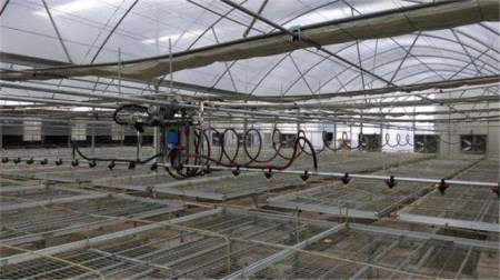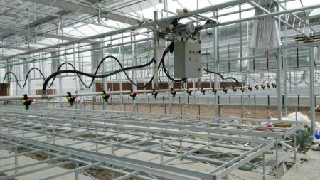 在溫室上部空間懸掛使用的微噴頭分為旋轉(zhuǎn)式、折射式、十字微霧式。通常在距地面2.5m—3.5m的高度處固定輸水管道,在管道上等距離安裝已選定噴灑直徑的微噴頭。為防止停灌時的余水滴漏給作物生長帶來影響,專門增配有微噴防滴器。專用的十字霧化微噴比一般微噴頭更有效地調(diào)節(jié)室內(nèi)溫濕度,噴灑更均勻。該系統(tǒng)主要用于溫室內(nèi)較高植株、葉類蔬菜和苗床灌溉等。