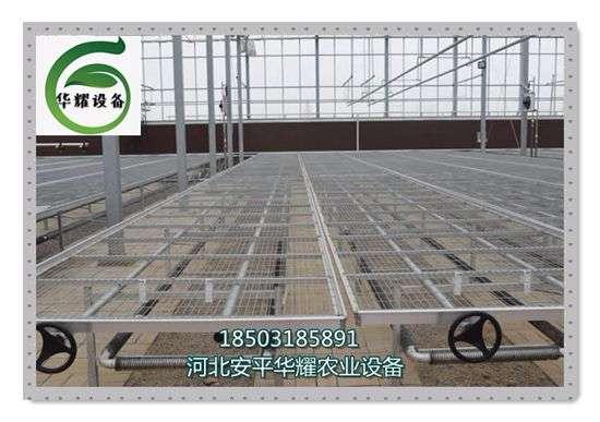 溫室大棚移動(dòng)苗床熱鍍鋅苗床的結(jié)構(gòu):主要有苗床網(wǎng)、滾動(dòng)軸、支架、苗床邊框、手輪、橫支撐、斜拉桿以及其它連接件組合而成。